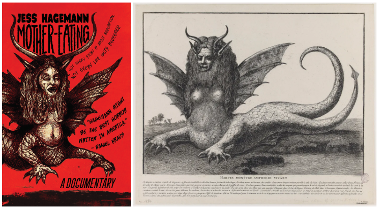 Front cover (left); On the right is the original inspiration: Harpie monstre amphibie vivant. Caricature contre Marie-Antoinette.