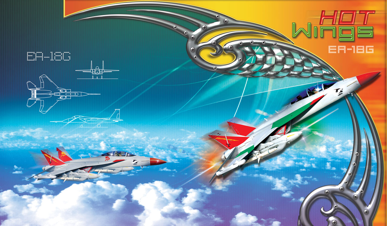 3. Boeing EA 18-G Growler flying above the clouds across the blue sky