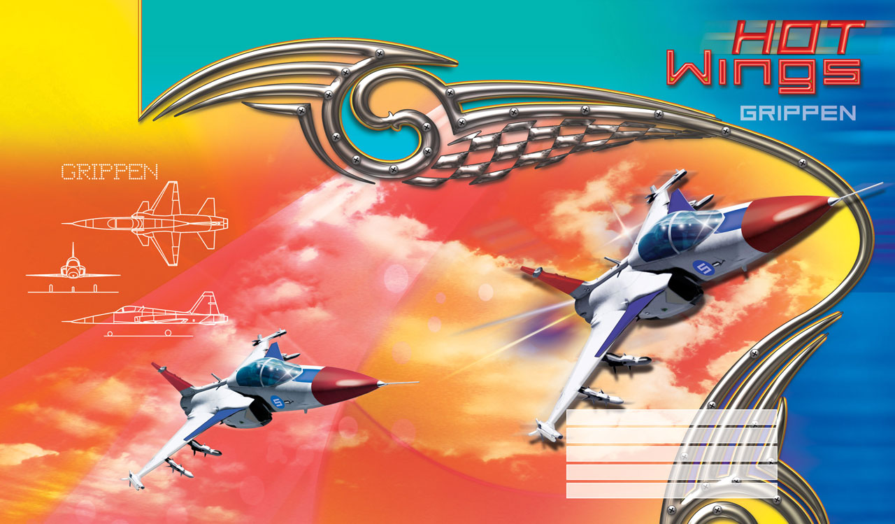 4. JAS 39 Grippen flying in the clouds across the yellow-red sunset sky