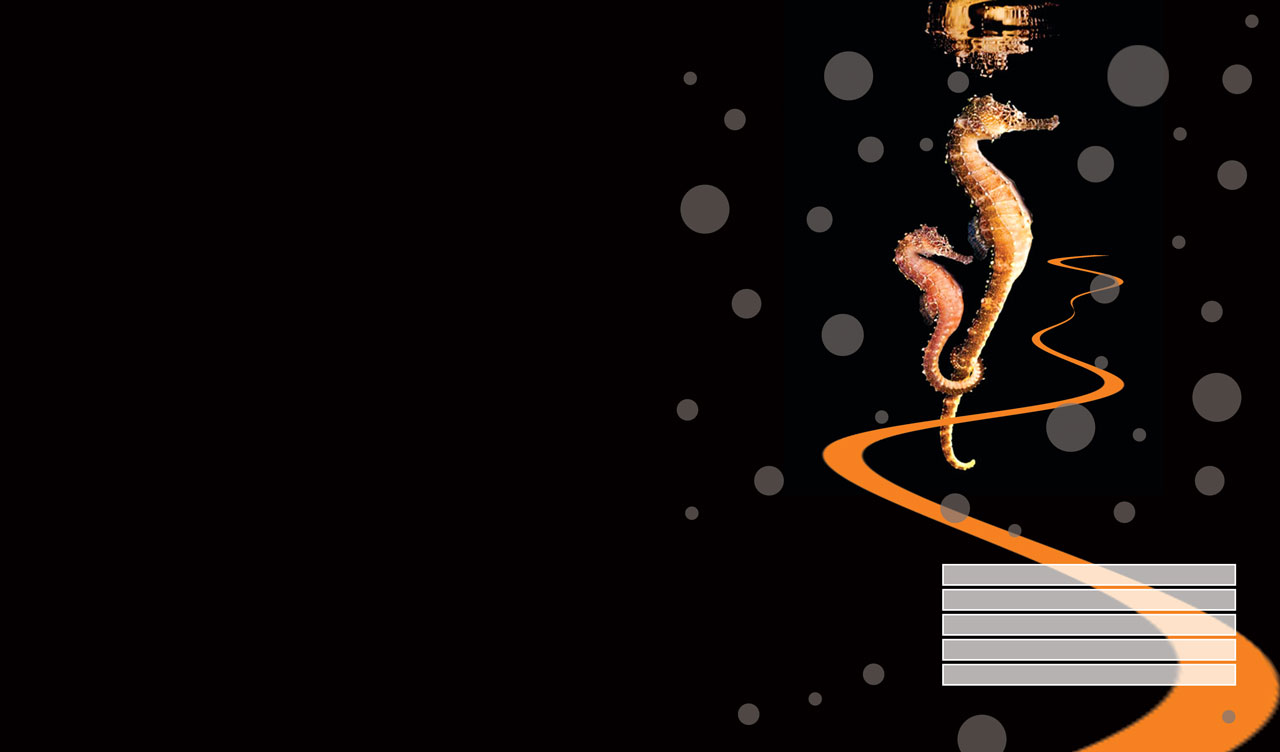 2. A seahorse carries a baby seahorse on its back in the waters of the abstract sea
