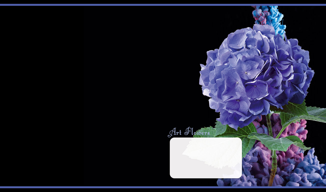 1. Yellow daffodil flower art against a yellow ink cloud on black 2. Red tulip flower art against a red ink cloud on black 3. Violet lilac flower art against a light blue ink cloud on black 4. Purple hydrangea flower art against a purple-blue ink cloud on black 5. Pink rose flower art against a fuchsia pink ink cloud on black