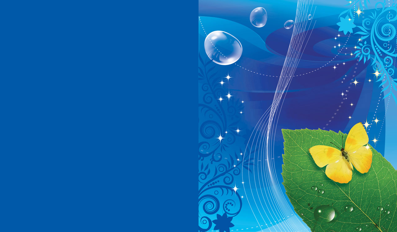 1. Yellow butterfly on a green leaf on a blue background with floral pattern