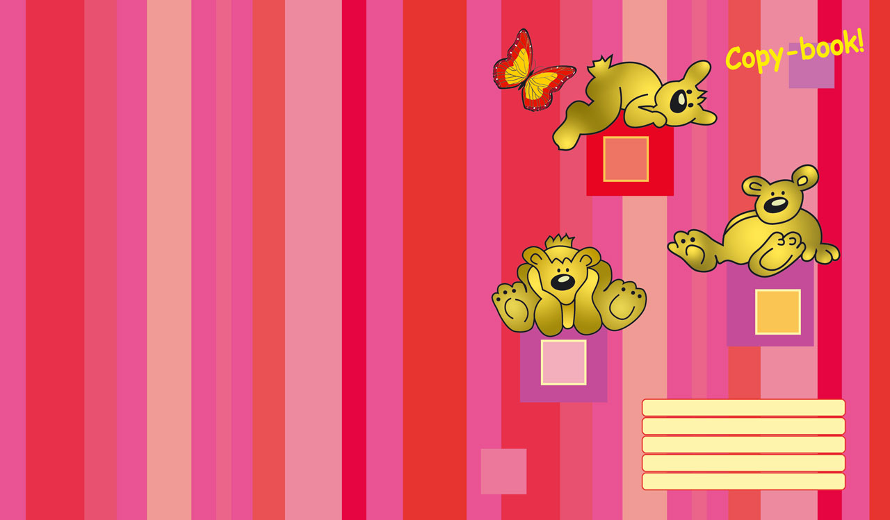 2. Three bears rest on squares on vertical striped red and pink pattern