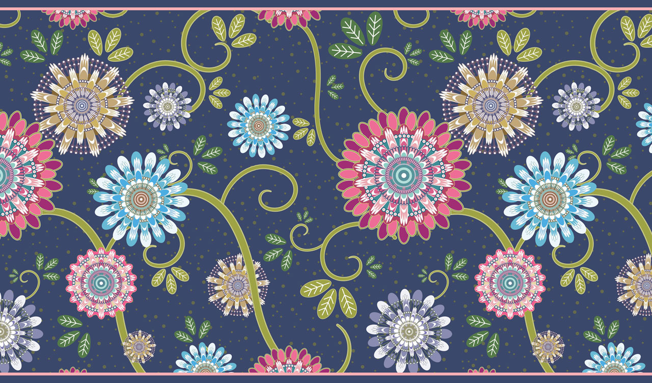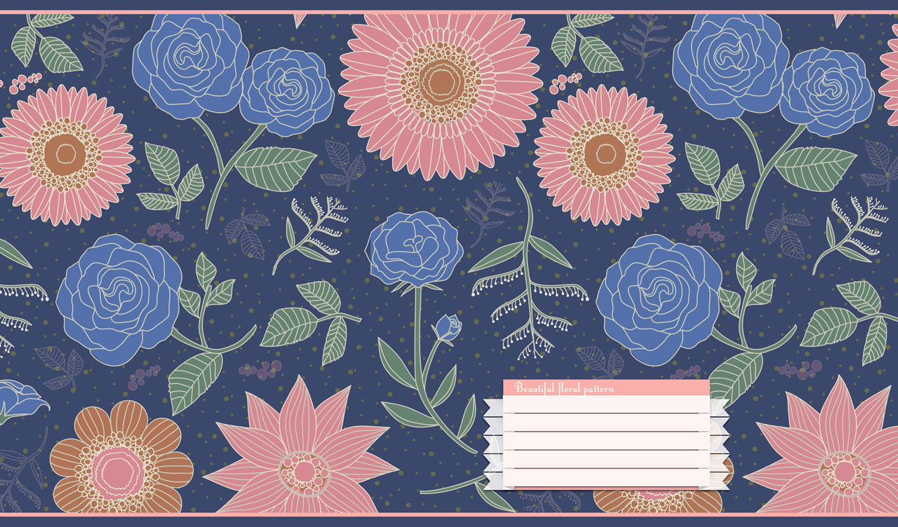 1. Floral seamless pattern with fuchsia flowers on navy blue backdrop 2. Floral seamless pattern with colorful dahlias on navy blue backdrop 3. Floral seamless pattern with pink-blue peonies on navy blue backdrop 4. Floral seamless pattern with pink dahlias and blue roses on navy blue backdrop