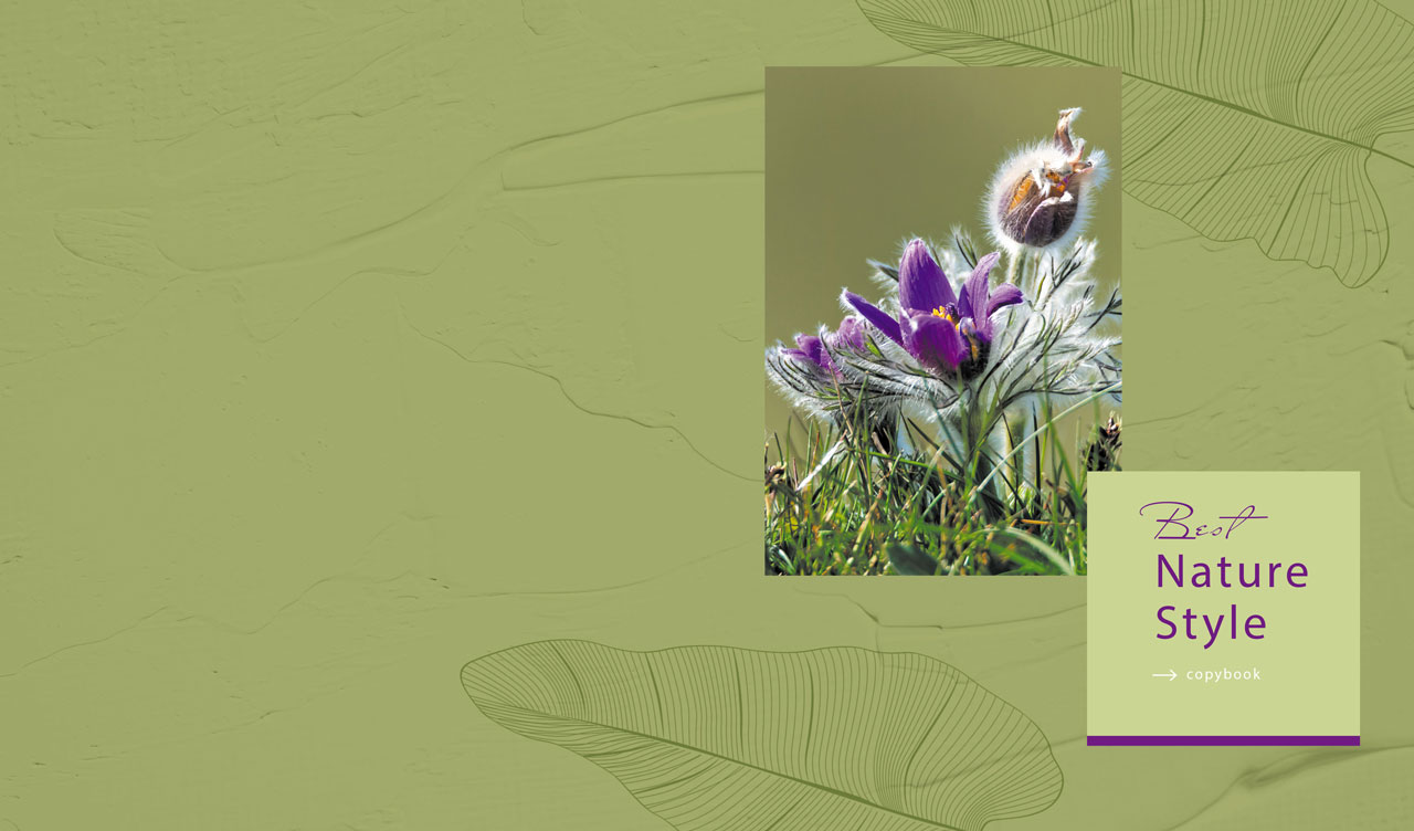 2. Floral miniature with delicate purple pasque flowers on a khaki-green backdrop