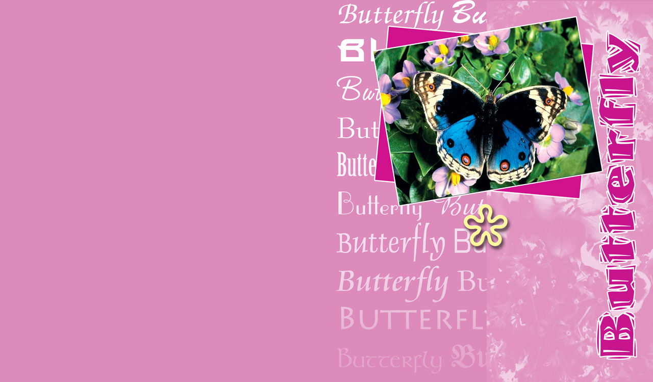 2. Framed black blue butterfly on flower in composition with inscriptions on pale pink