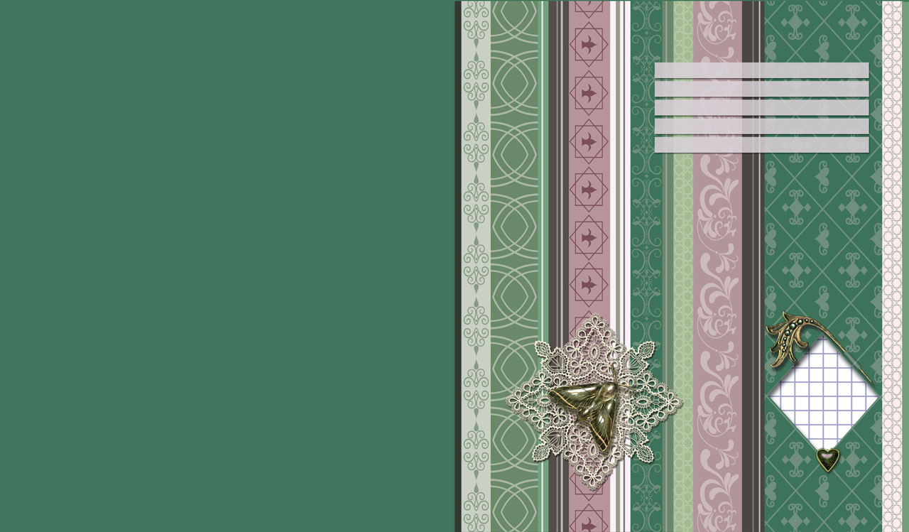4. Golden green butterfly brooch on striped canvas with an ornament pattern on green