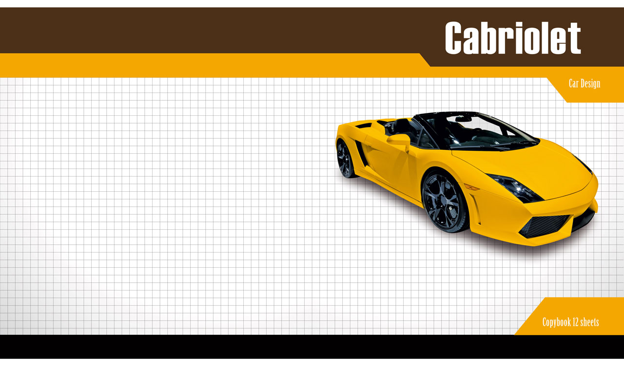 Modern yellow sports cabriolet on a white grid paper backdrop