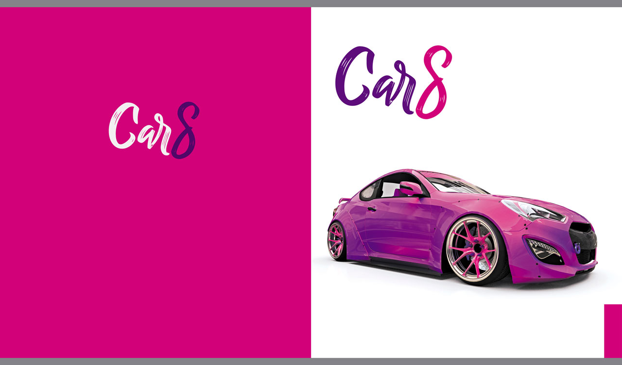 5. Pearl purple-pink sports car on white and fuchsia pink dual backdrops