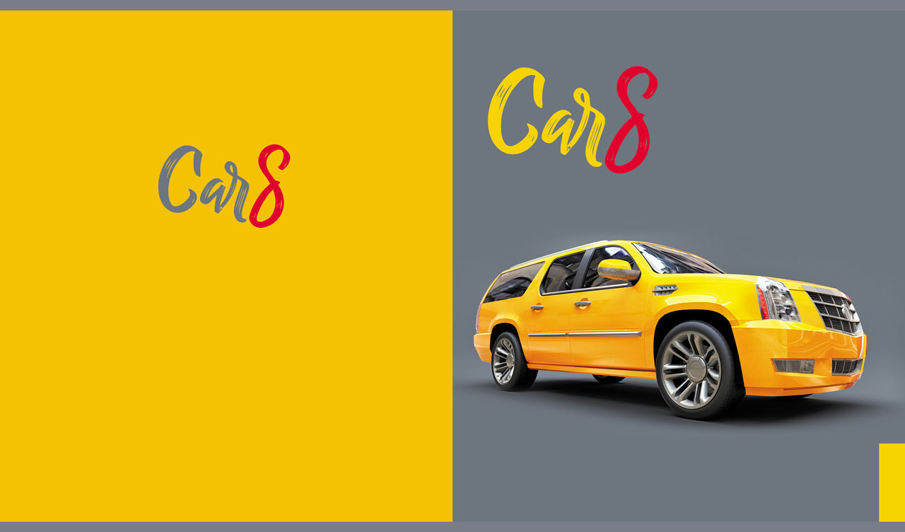 6. Bright yellow luxury SUV on grey and yellow dual backdrops
