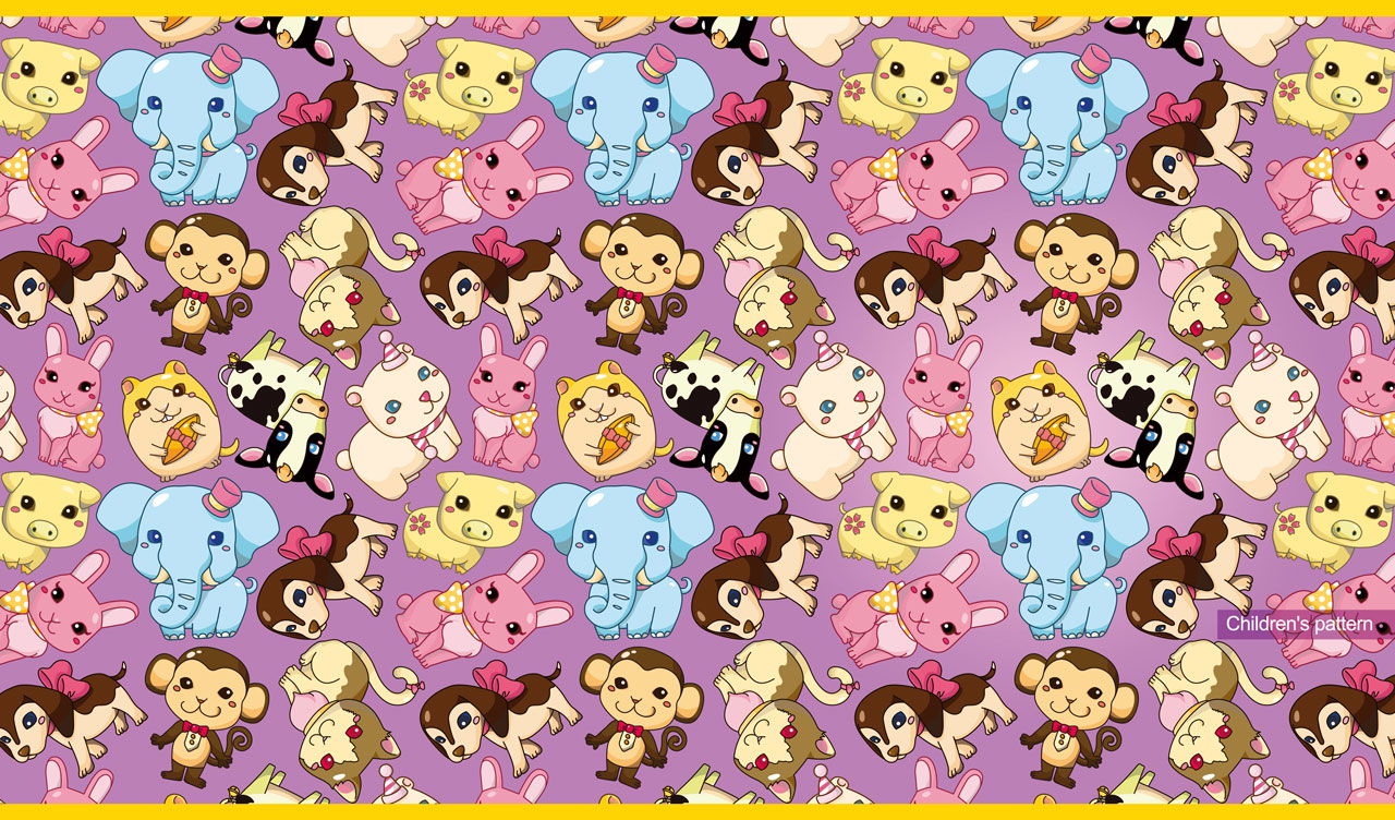 5. Seamless cartoon animal pattern with adorable animals and pets on purple-pink