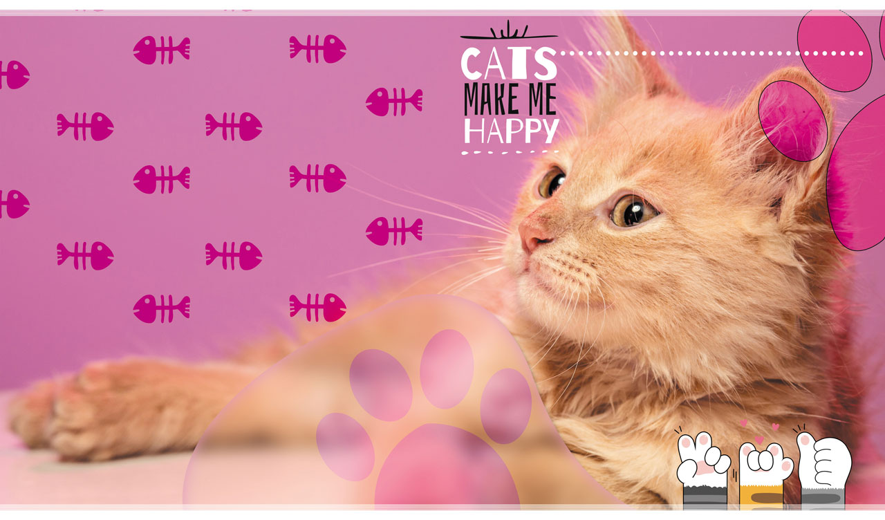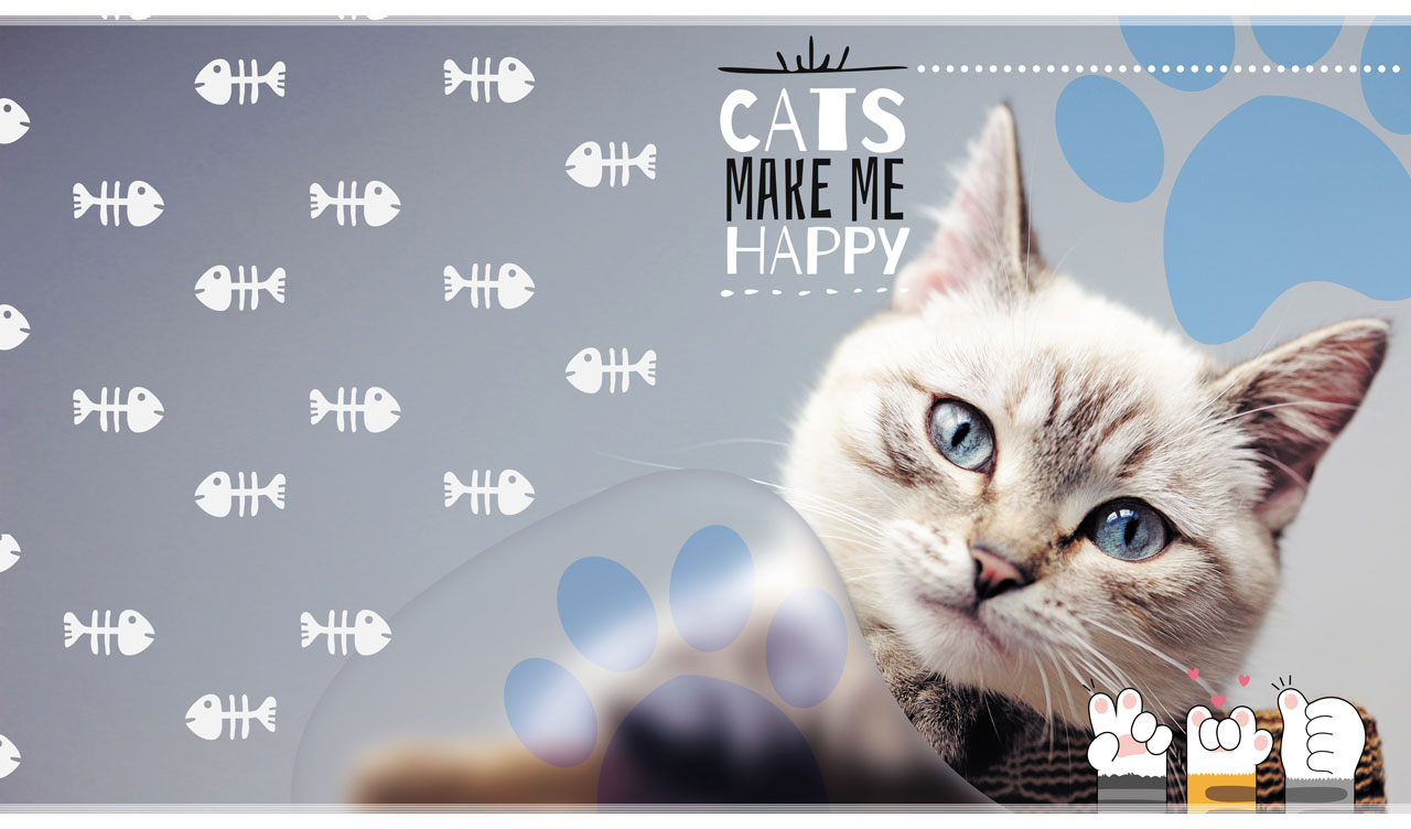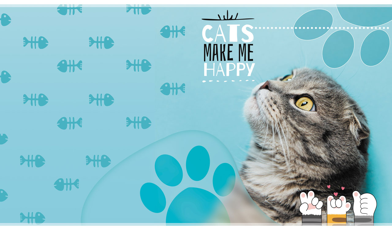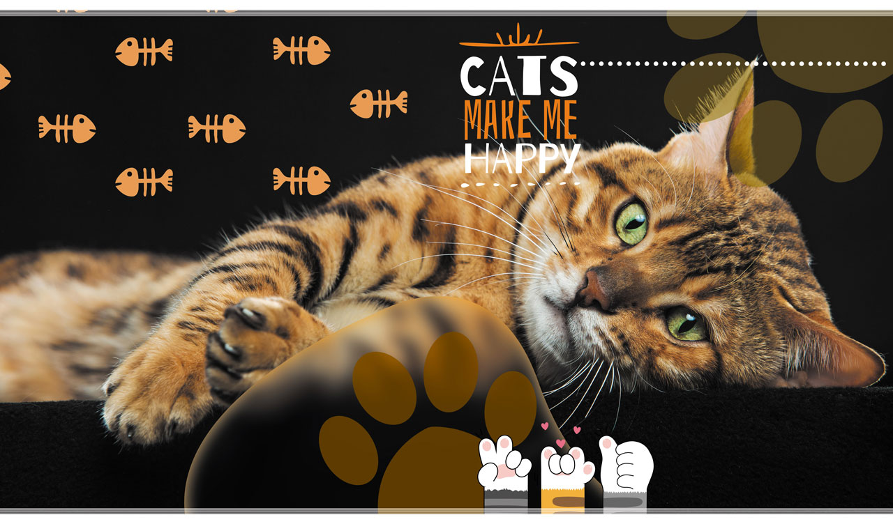 Cats Make Me Happy | Feline Portraits with Fish Skeleton & Paw Stencils