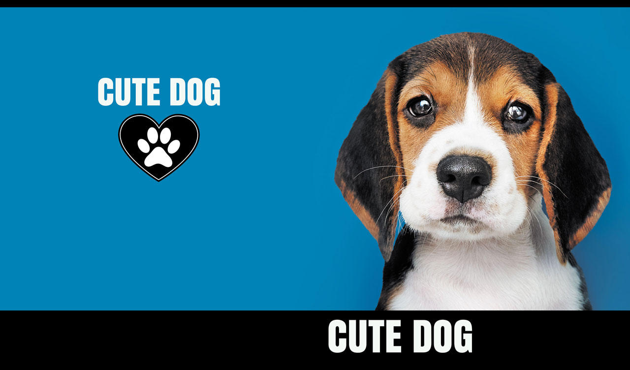 A portrait of a charming beagle puppy gazes forward posing against a vibrant navy blue background.