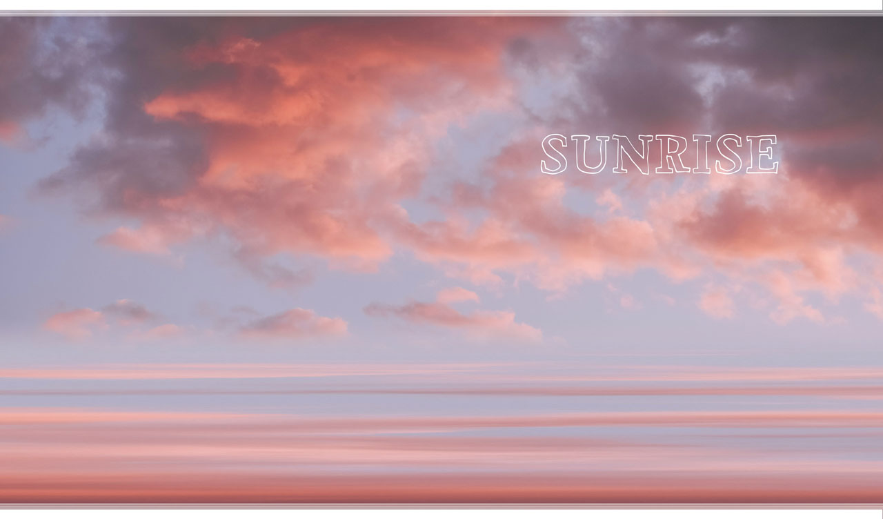 1. Morning seascape with calm sea and soft white clouds in a blue sky 2. Sunset seascape with calm sea and orange-purple clouds in a blue sky 3. Space seascape with calm sea and orange-grey clouds in a pastel blue sky 4. Storm seascape with calm sea and orange-grey clouds in a grey-blue sky 5. Sunrise seascape with calm sea and purple-pink clouds in a pastel blue sky