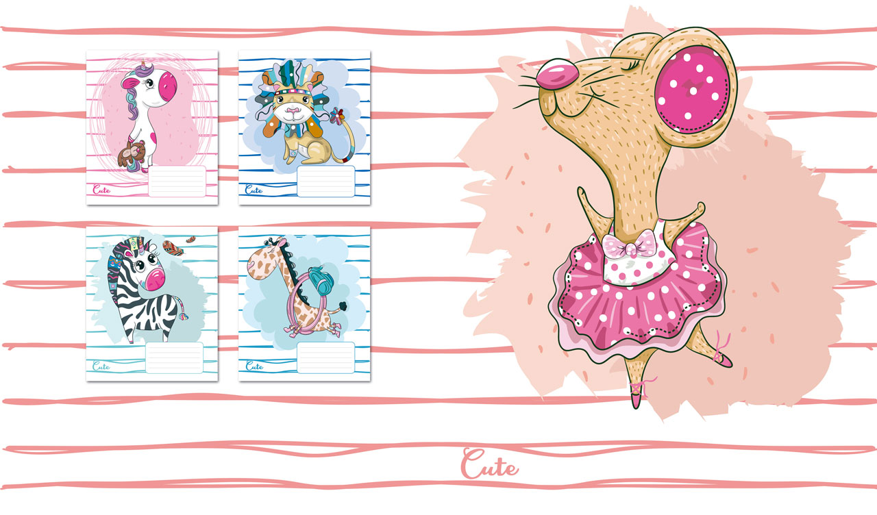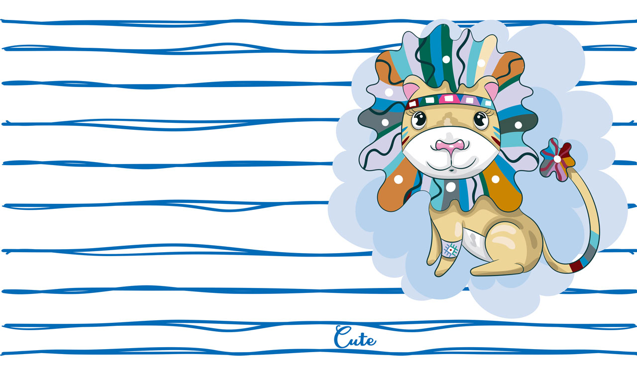 1. A cartoon running giraffe on a blue doodle line seamless pattern on white 2. A cartoon unicorn and teddy bear on a pink doodle line seamless pattern on white 3. A cartoon boho-style baby lion on a blue doodle line seamless pattern on white 4. A cartoon boho-style zebra on a teal doodle line seamless pattern on white 5. A cartoon ballerina mouse on a beige-red doodle line seamless pattern on white