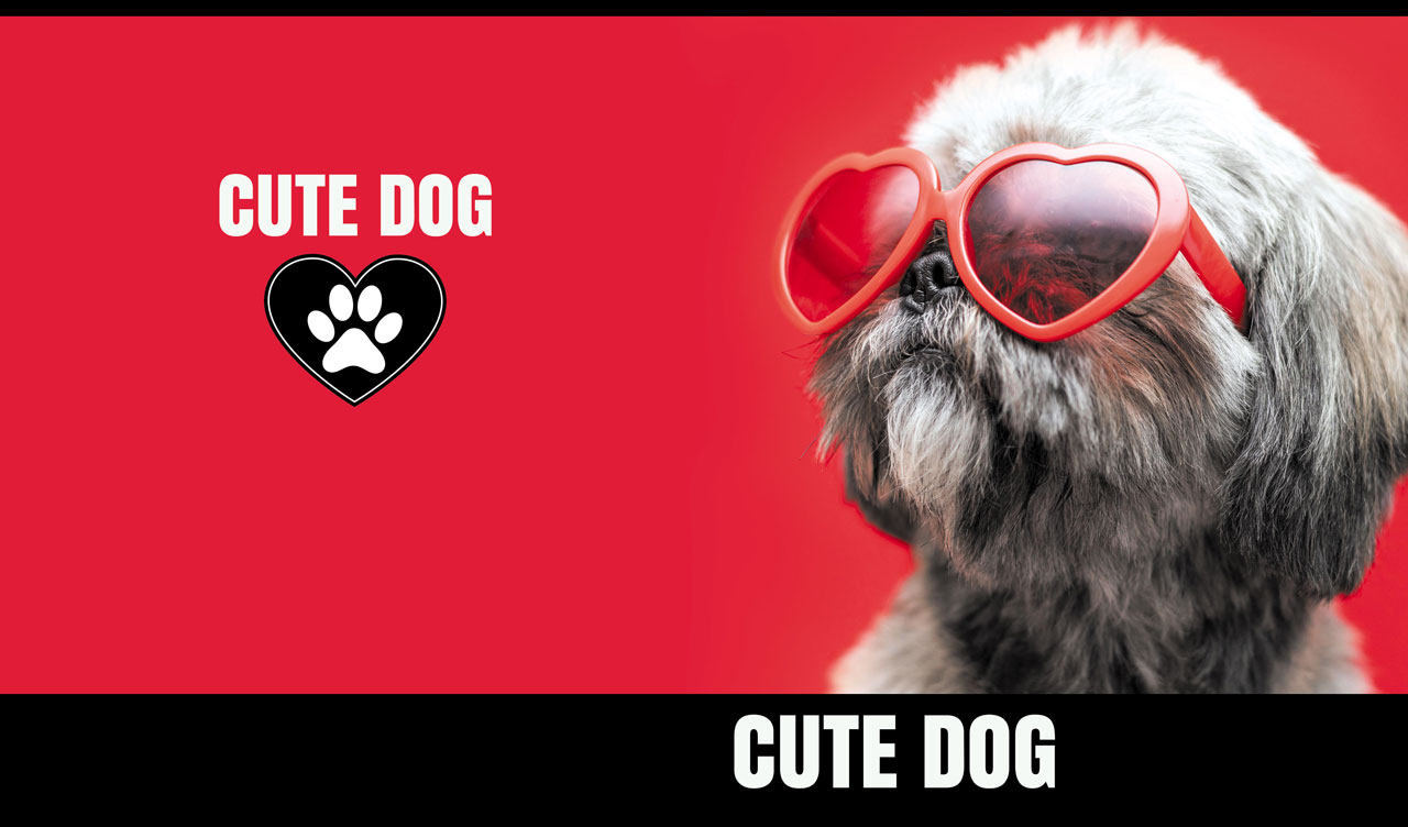 2. Close-up of a shaggy Shih Tzu wearing sunglasses on a red backdrop
