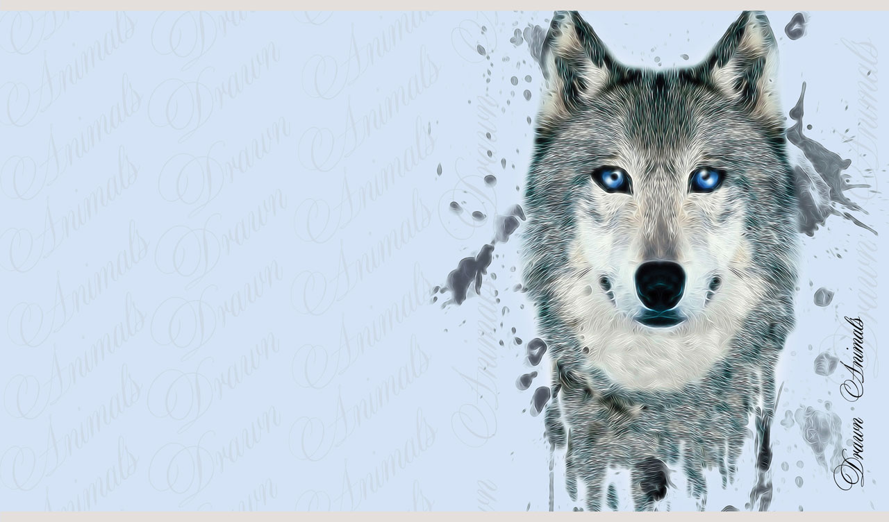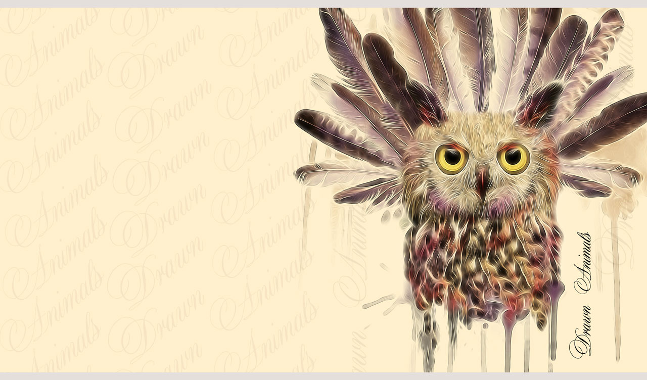 1. Portrait of a yellow-eyed owl with abstract feather-flames on pastel yellow 2. Portrait of a blue-eyed wolf with abstract grey fur on pastel blue 3. Portrait of a blue-eyed jaguar with abstract flame fur on pastel orange-beige 4. Portrait of a black-eyed dog with abstract brown and white fur on pastel pink