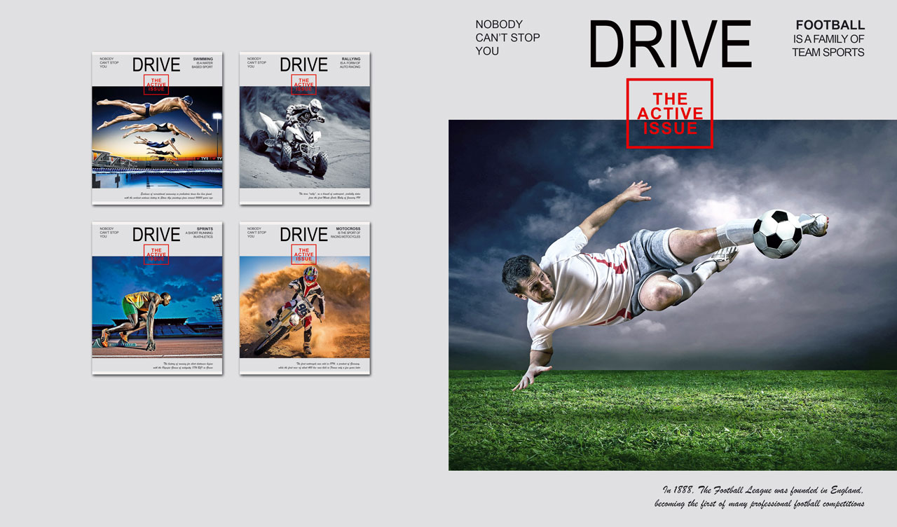 1. Swimmers jumping from start on the cover of a vintage sports magazine on pastel gray 2. Quad bike driver on the cover of a vintage sports magazine on pastel gray 3. Motocross driver in the dust on the cover of a vintage sports magazine on pastel gray 4. Sprinter ready to win on the cover of a vintage sports magazine on pastel gray 5. Football player on the cover of a vintage sports magazine on pastel gray