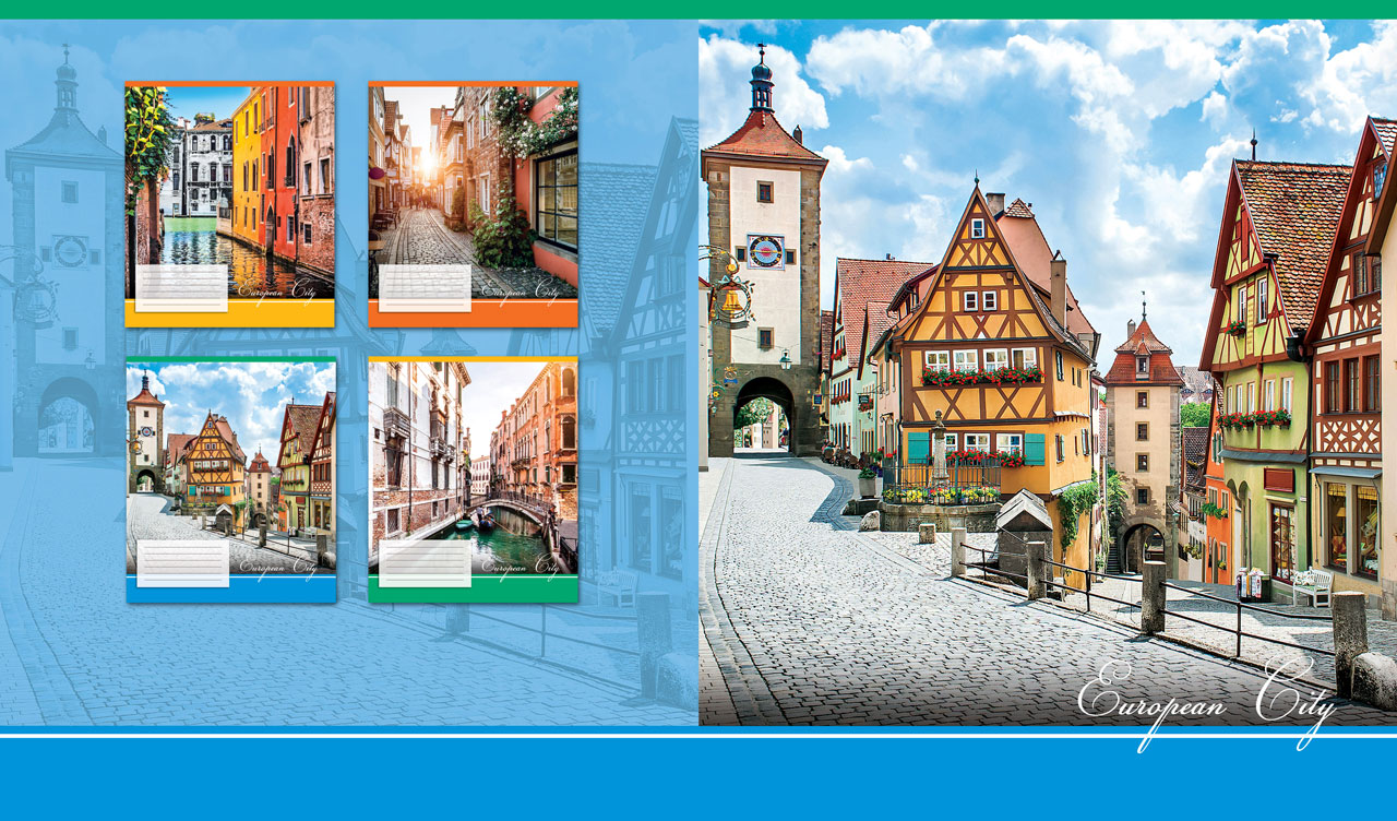 1. Sunset lights up a narrow street with brick buildings and street cafes in Bremen 2. Ocher, yellow and white buildings with arched windows lined the canal in Venice 3. Gondolas pass under a bridge along a canal between the lined buildings in Venice 4. Pastel color houses and a chapel with an archway in Rothenburg