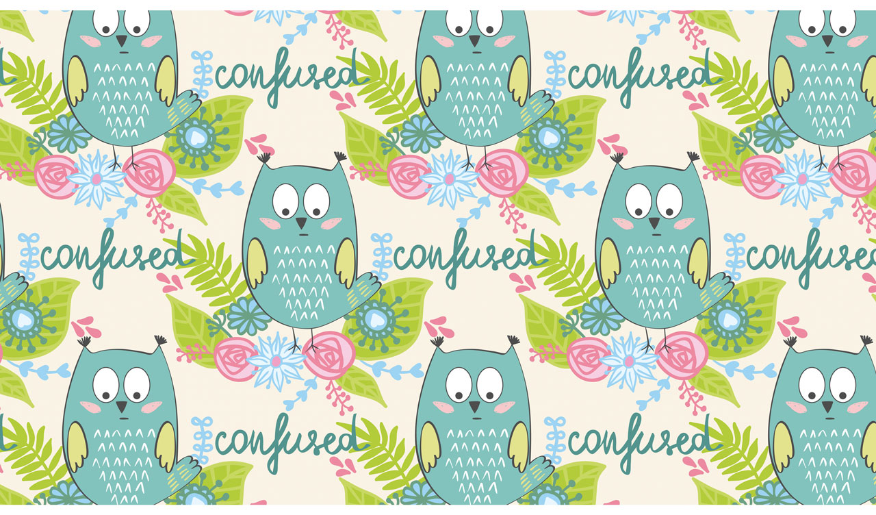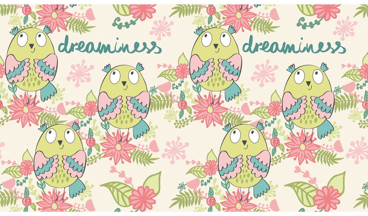 1. Seamless pattern of colorful owls on a white backdrop with floral patterns 2. Seamless pattern of teal owls on a pastel yellow backdrop with floral patterns 3. Seamless pattern of green owls on a pastel beige backdrop with floral patterns 4. Seamless pattern of yellow owls on a pastel white backdrop with floral patterns 5. Seamless pattern of grey owls on a pastel white backdrop with floral patterns
