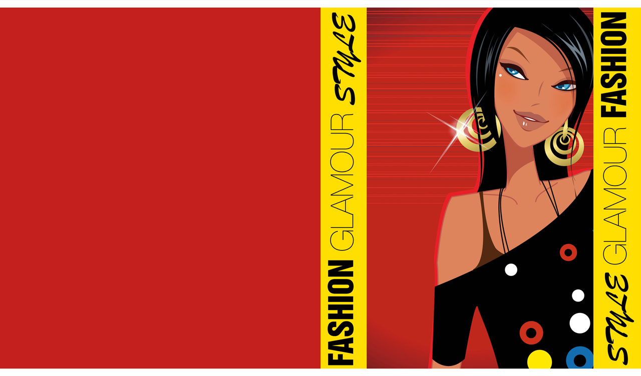 1. Glamorous fashionable brunette with gold earrings on a red background 2. Glamorous fashionable black haired DJ girl on a lime green background 3. Glamorous fashionable blonde with diamond earrings on a light blue background 4. Glamorous fashionable brunette talking on the phone on a tan background 5. Glamorous fashionable blonde in a golden dress on an olive-tan background