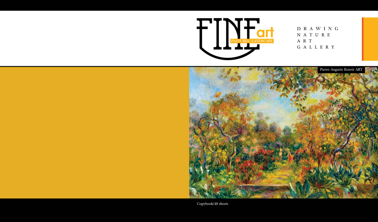 1. The Parc Monceau by Claude Monet park on olive green and white background 2. La Sieste by Vincent van Gogh on blue and white background 3. French Landscape by Jean Marc Janiaczyk on red and white background 4. Landscape at Beaulieu by Pierre August Renoir on ocher-yellow and white backdrop
