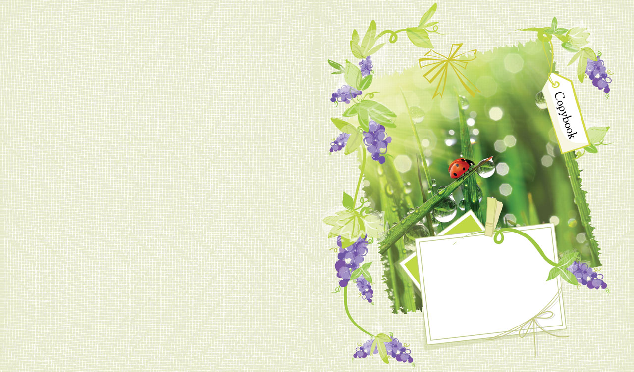 1. Ladybug on the grass in dew on a pastel green fabric texture