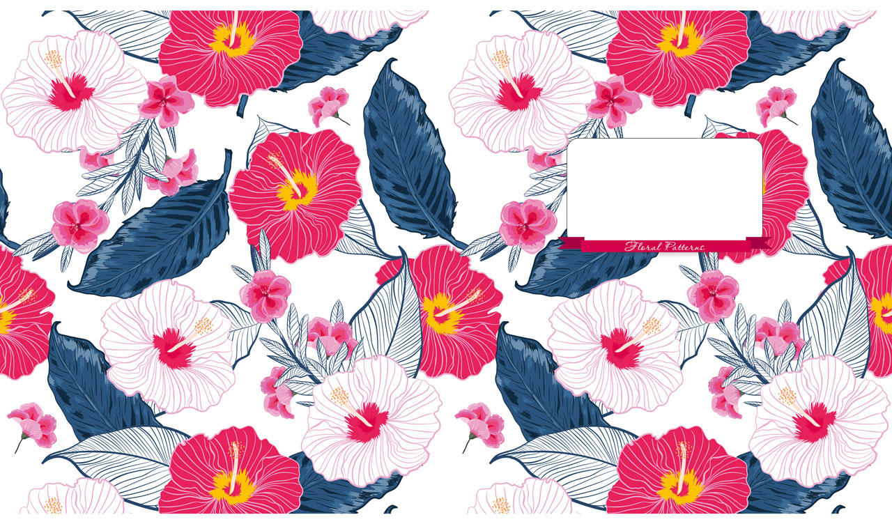 5. Seamless floral pattern with white and pink hibiscuses on white