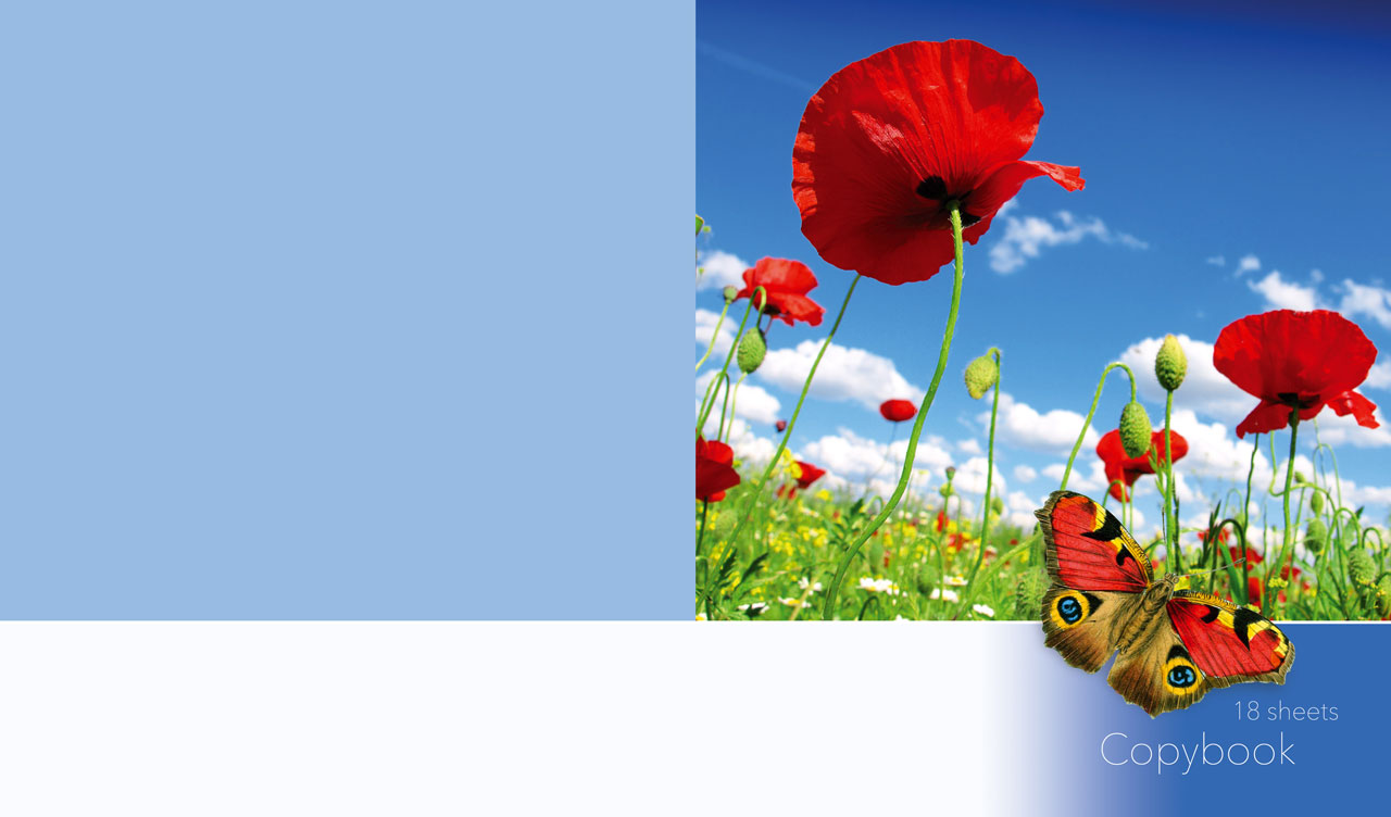 1. Sunflower and an Issoria Lathonia butterfly against a clear blue sky 2. Crown daisies and a swallowtail butterfly against a clear light blue sky 3. White daisies and a swallowtail butterfly against a clear light blue sky 4. Dandelions and a yellow butterfly against a clear navy blue sky 5. Poppies and a peacock butterfly against a clear blue sky