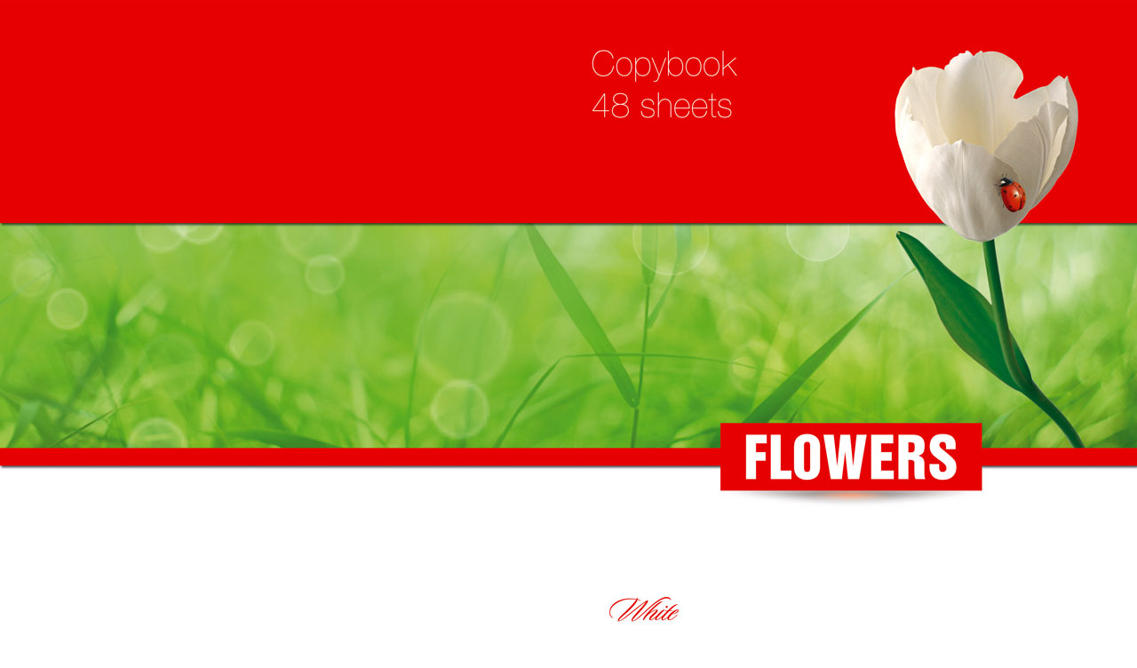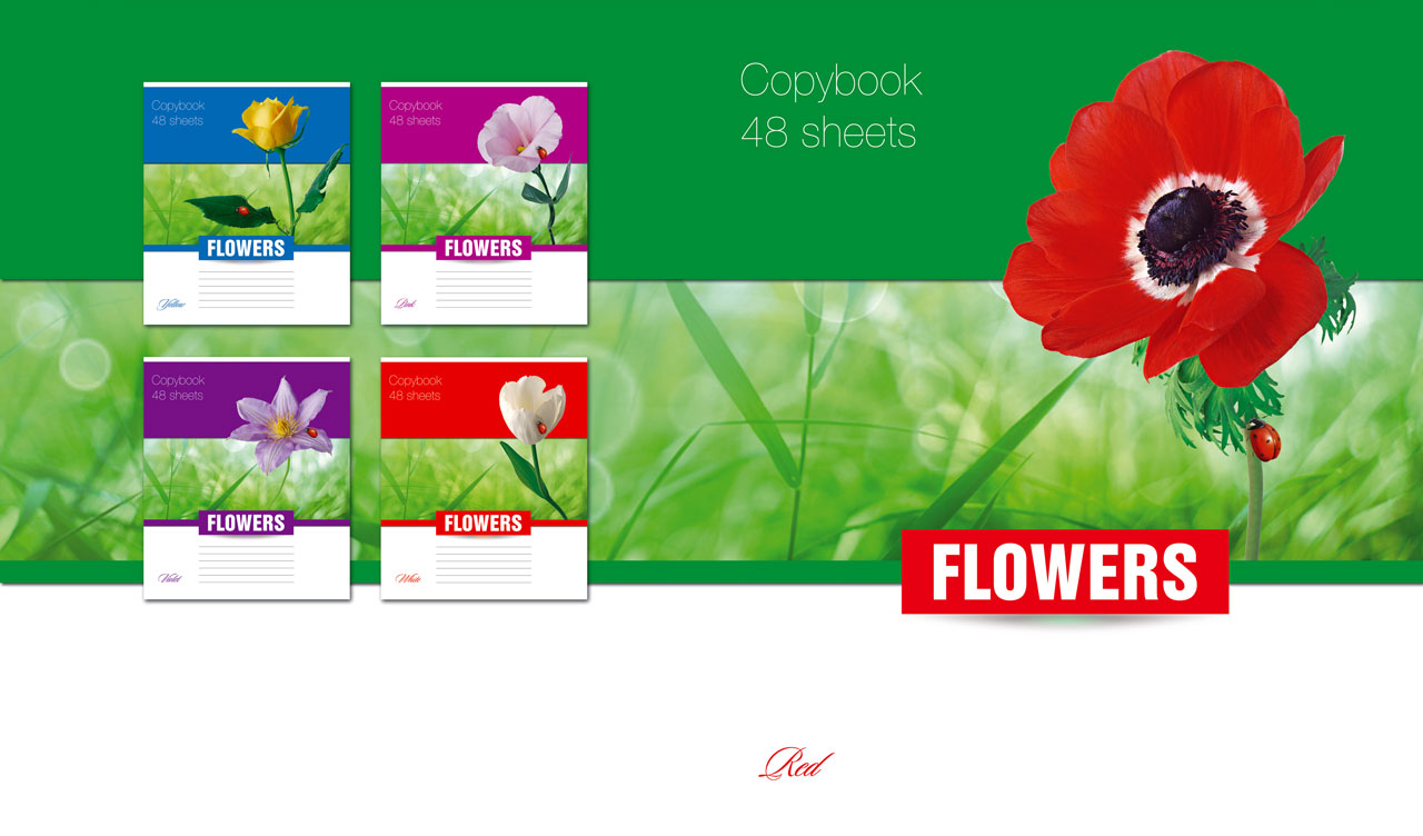 1. Graceful yellow rose and a ladybug on blue, green and white backgrounds 2. Chic pink Confederate rose and a ladybug on fuchsia, green and white backgrounds 3. Delicate white tulip and a ladybug on red, green and white backgrounds 4. Silky violet leather flower and a ladybug on purple, green and white backgrounds 5. Lovely red poppy and a ladybug on green and white backgrounds