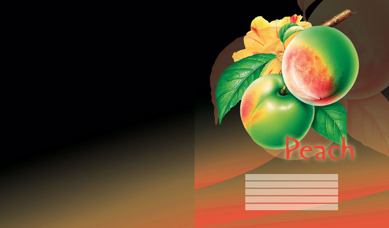 2. Couple of green peaches with leaves, isolated on a black orange gradient
