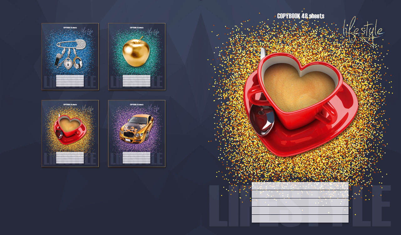 2. Golden apple against a dark grey backdrop with teal glitter confetti