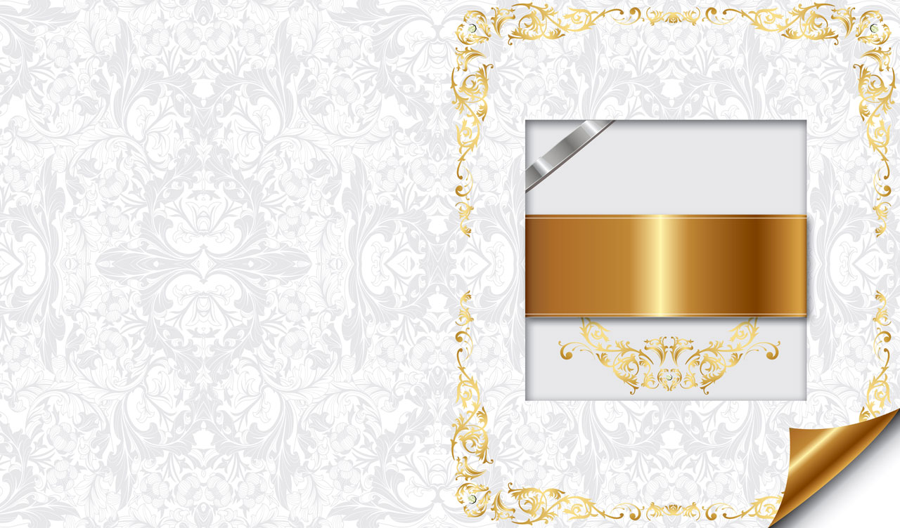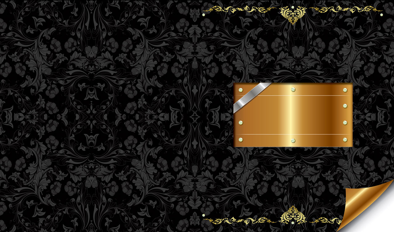 1. Gold stripe on dark purple wallpaper embellished with floral and swirl patterns 2. Gold-striped box on the white wallpaper adorned with floral and swirl patterns 3. Gold square on a black wallpaper embellished with floral and swirl patterns 4. Gold rectangle on a navy wallpaper embellished with floral and swirl patterns