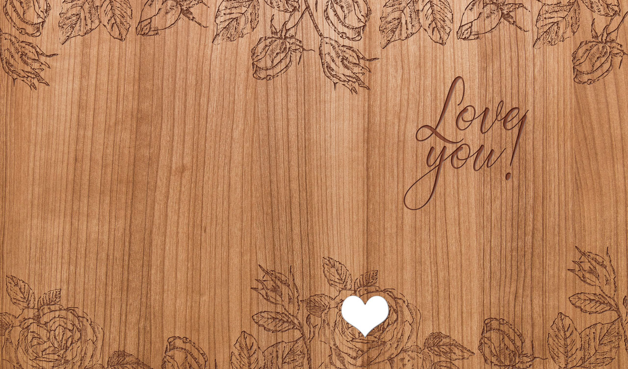 Wood burning art depicting a floral edge design on a beige wooden texture