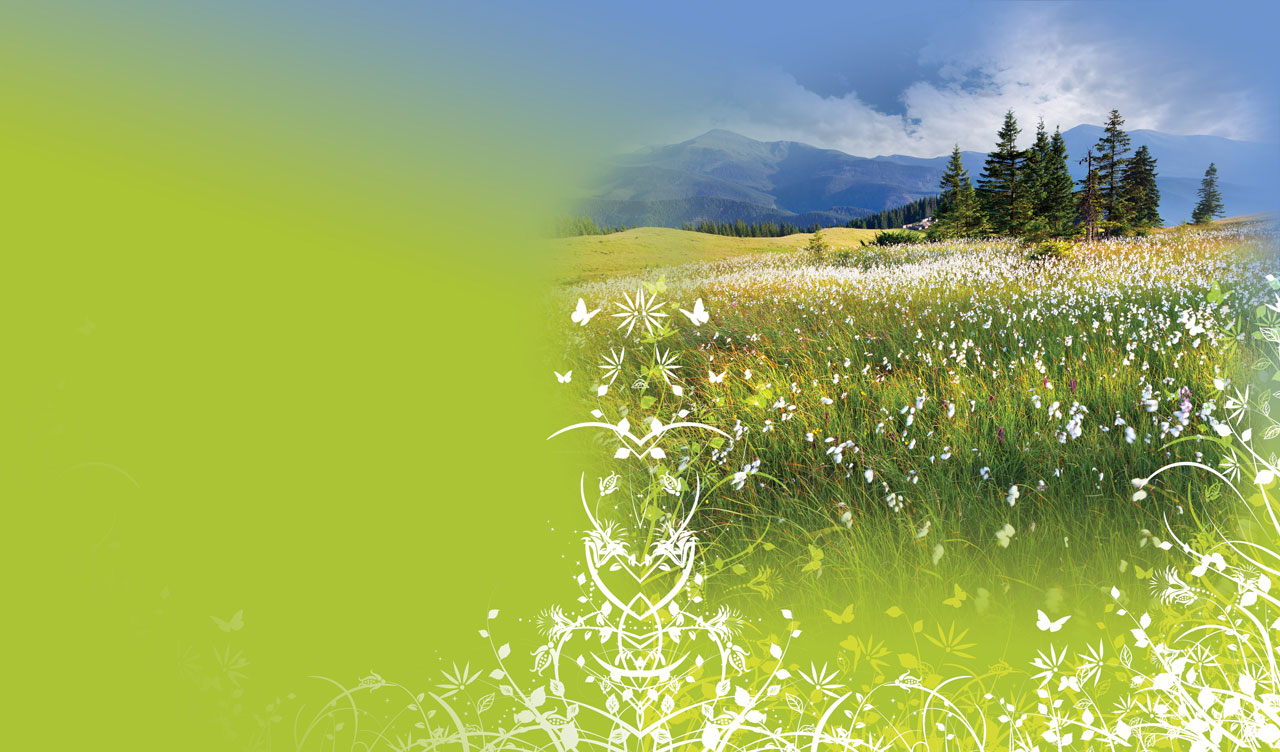 1. Summer meadow against the backdrop of mountains on a blue-green gradient