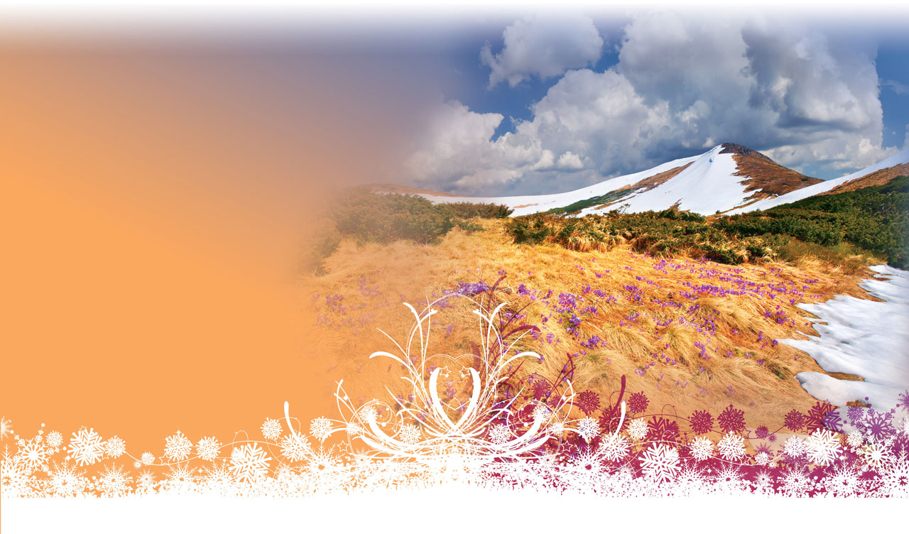4. Melting snow on spring foothills against the clouded sky on ocher-blue gradient