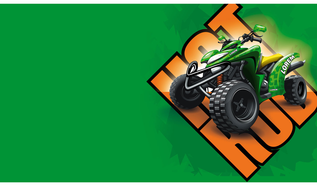 Animated logo featuring a green quad bike with a yellow seat and an orange font print on a green background.