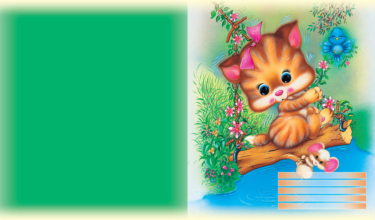 4. Animated happy kitten with colorful flowers on a green background