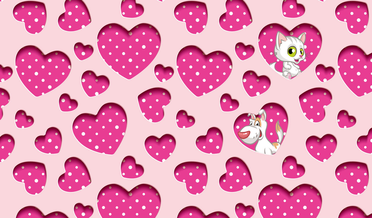 Heartfelt Paws | Playful Cats & Dogs in Seamless Heart Patterns