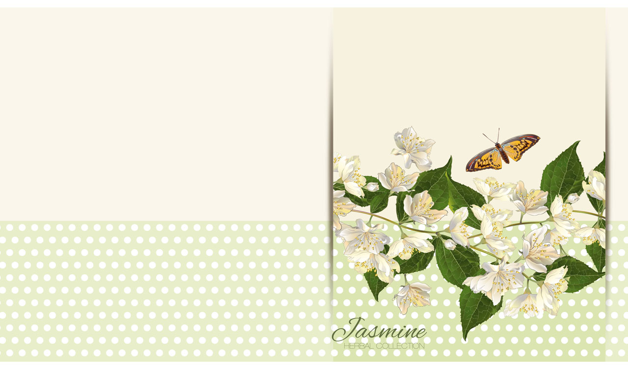 1. Gift card with jasmine flowers on a pastel green polka dot backdrop 2. Gift card with lavender flowers on a pastel purple polka dot backdrop 3. Gift card with chamomile flowers on a pastel yellow polka dot backdrop 4. Gift card with roses on a pastel pink polka dot backdrop 5. Gift card with wildflower on a pastel teal polka dot backdrop