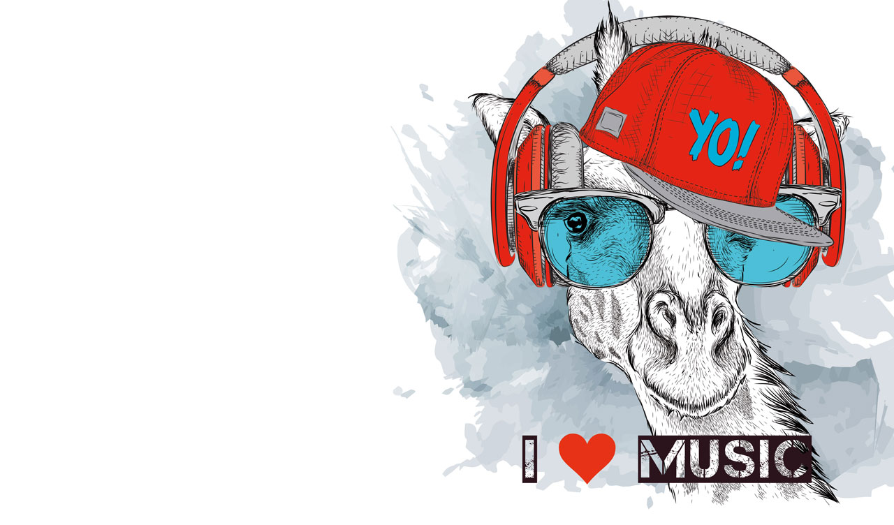 1. Drawing of a lion’s head wearing headphones and a fuchsia cap on white 2. Drawing of a bunny’s head wearing headphones and an orange cap on white 3. Drawing of a giraffe’s head wearing headphones and a red cap on white 4. Drawing of an owl’s head wearing headphones and a hot pink cap on white 5. Drawing of a cat’s head wearing headphones and a red cap on white