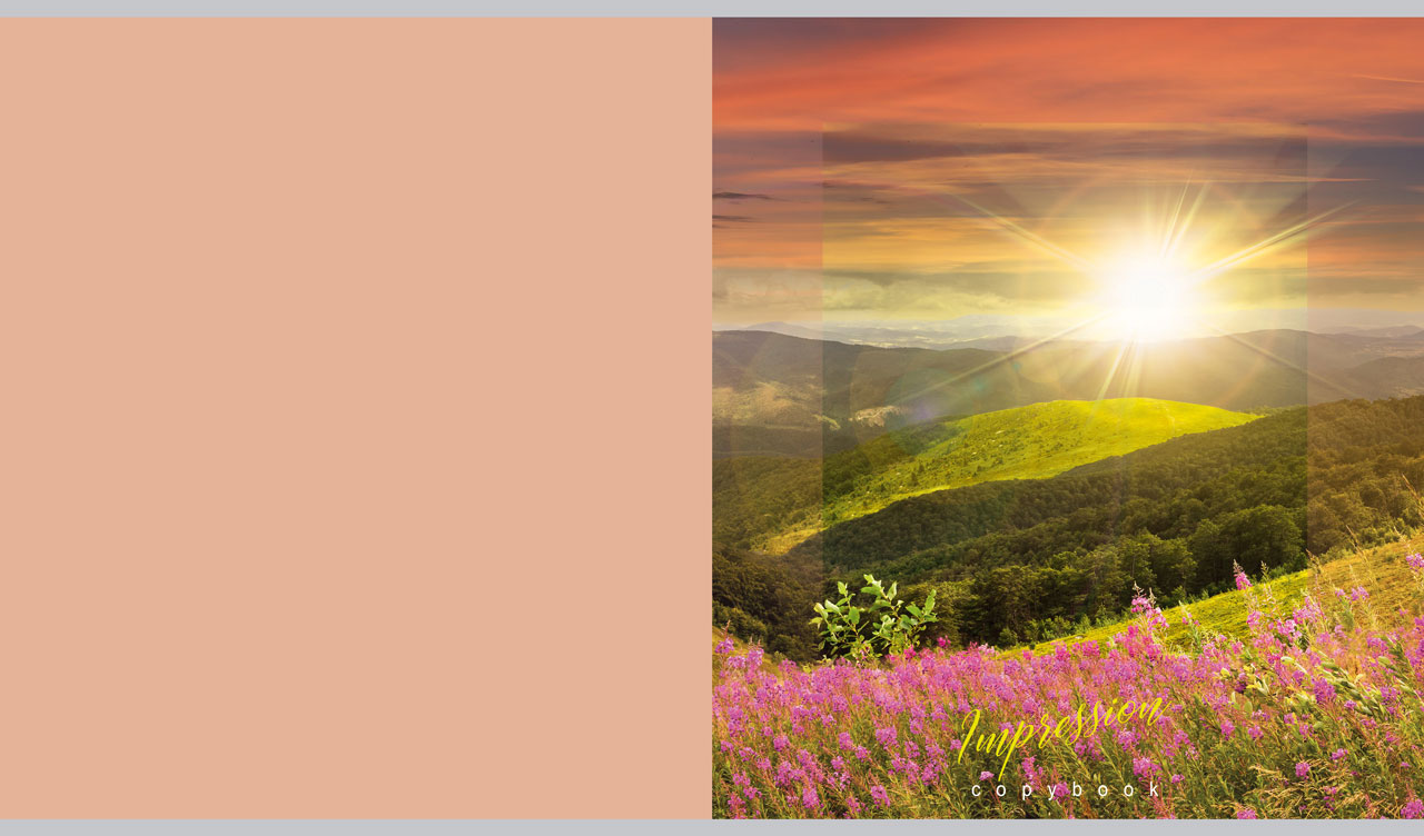 1. Mountain meadow with close-up views of violet crocuses in a pastel purple frame 2. Green terraced rice field at a picturesque dawn in a pastel green-beige frame 3. A misty morning field in the foothills of a mountain on a pastel blue backdrop 4. Sunrise over a lavender field and lush mountains on a pastel beige-pink backdrop 5. Green field of needle grasses at a bright dawn on a pastel violet backdrop