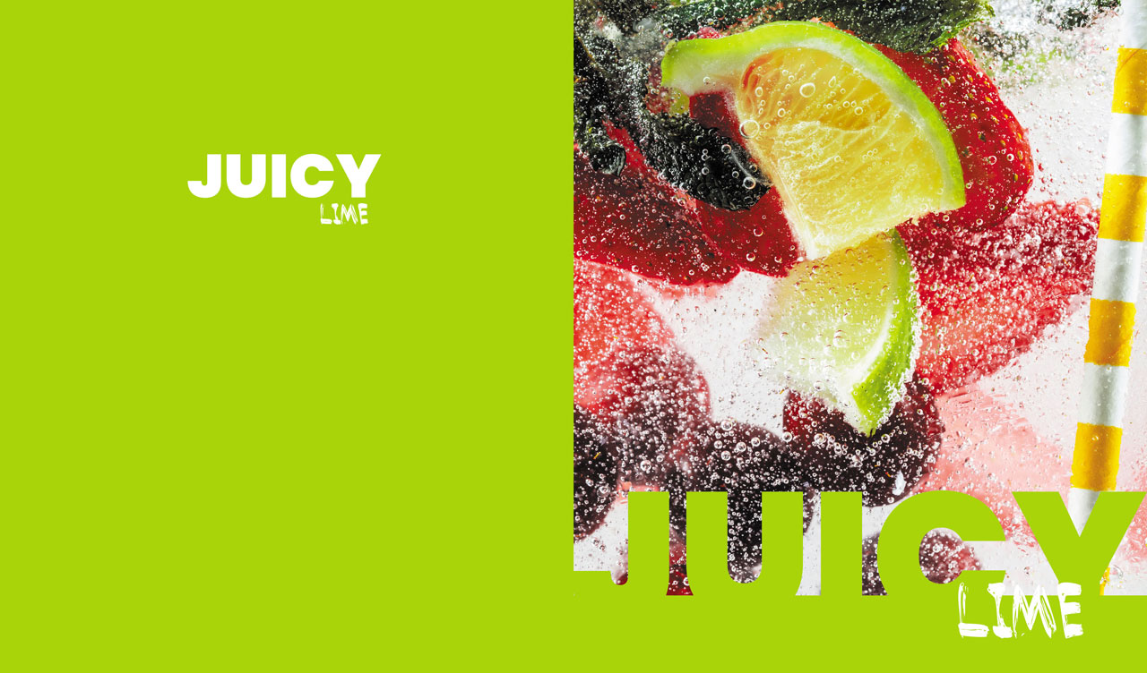 1. Blueberries, fruits and ice floating in sparkling water on dark violet