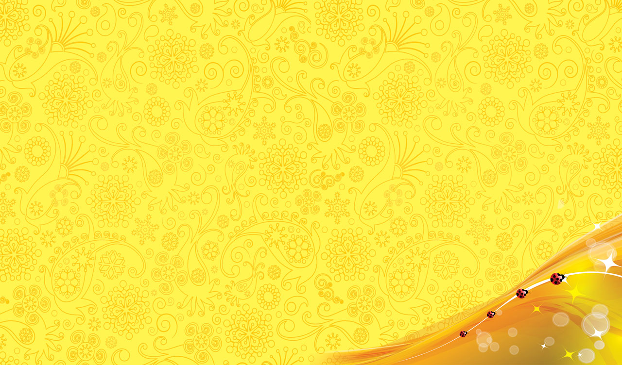 3. Ladybugs walk on orange bokeh surface on a yellow seamless floral pattern