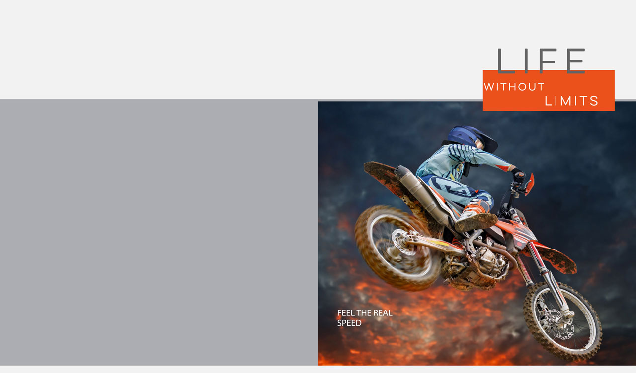 1. Motocross racer jumps high above fire against a grey background 2. Skater in a check shirt performs a flip trick against a grey background 3. Hockey players fight for puck on ice against a grey background 4. Soccer player kicks the ball in a storm against a grey background 5. Girl practices handstand on the rooftop against a grey background