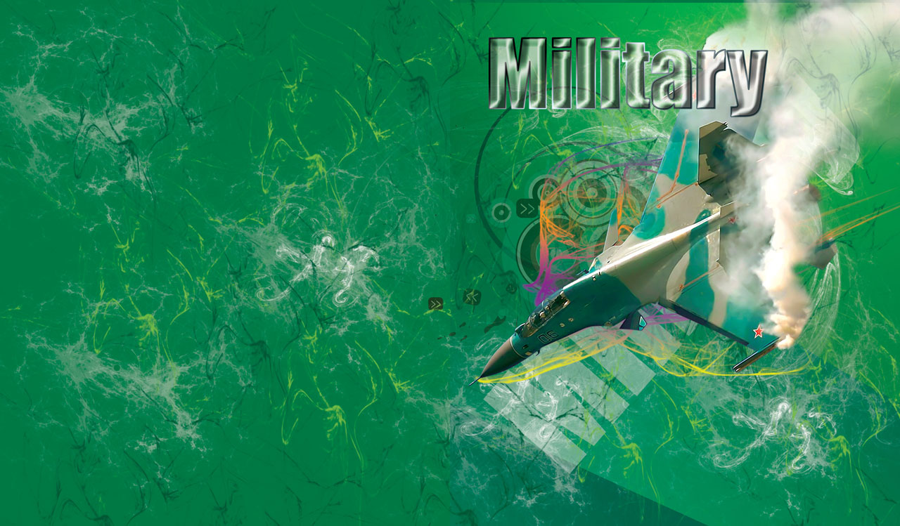 5. Fighter jet in green gray camouflage, with a smoke screen, on a green background
