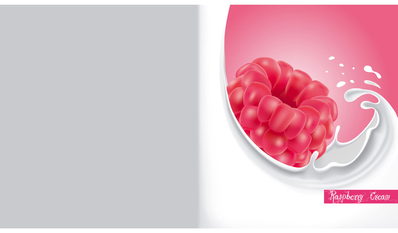 1. Fresh and sweet raspberry in a milk wave on a pink backdrop