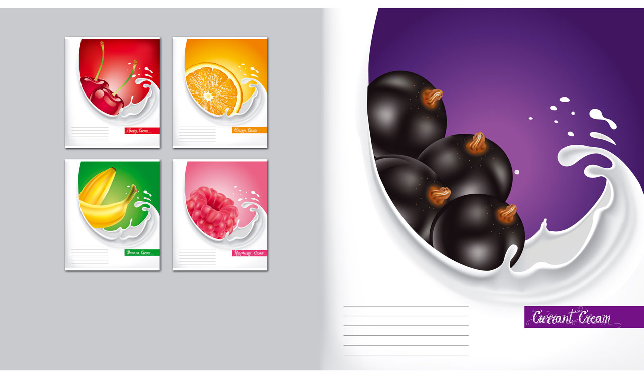 4. Fresh and juicy currants in a milk wave on a purple backdrop