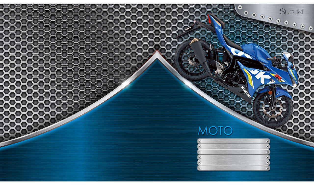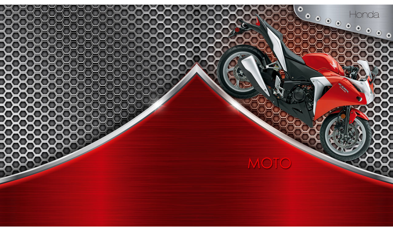 1. A lime-black supersport bike on a green chrome and steel honeycomb backdrop 2. A white supersport bike on a fuchsia chrome and steel honeycomb backdrop 3. A blue-black supersport bike on a blue chrome and steel honeycomb backdrop 4. Red and black supersport bike on a red chrome and steel honeycomb backdrop 5. Black and yellow supersport bike on a yellow chrome and steel honeycomb backdrop