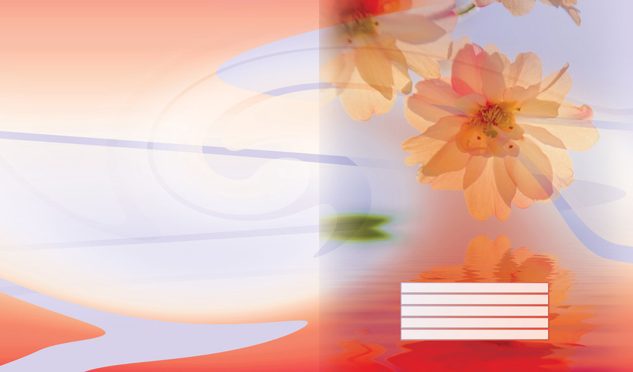 4. Orange and yellow gerberas above the surface of calm water on an orange gradient